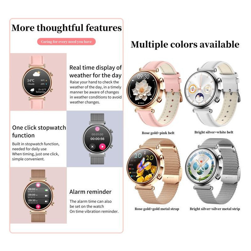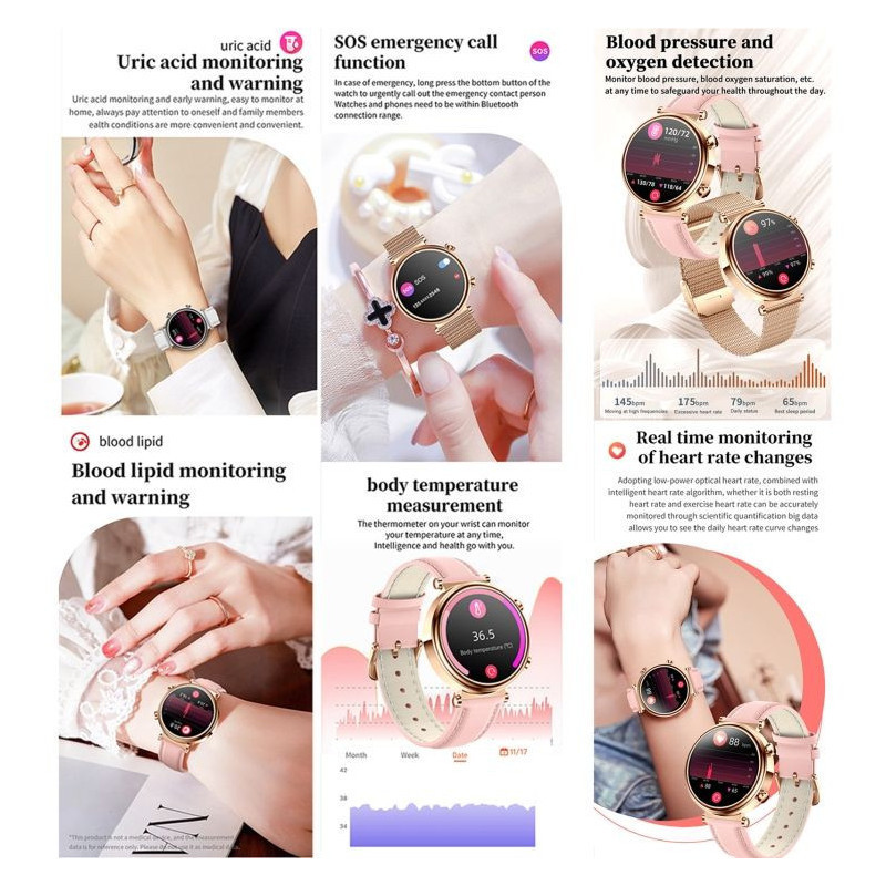 Découvrez une nouvelle génération de montres connectées dédiée à votre santé ! La Montre Connectée Élégante vous permet de surveiller votre glycémie sans piqûre, ainsi que l’acide urique, les lipides sanguins, la température corporelle, et bien plus. Équipée d’un écran HD, d’un assistant vocal intelligent, et de la fonction appel Bluetooth, elle est aussi élégante que performante.