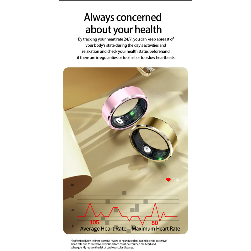 La SR01estunebagueintelligenteélégante et robusteenacierinoxydable, équipée de capteursavancés pour surveillervotre santé et vos performances sportives. Discrète, confortable et résistante à l’eau (IP68), elleoffre un suivicomplet du rythmecardiaque, de l’oxygènesanguin, de la pressionartérielle, ainsi que de multiples modes sportifs.